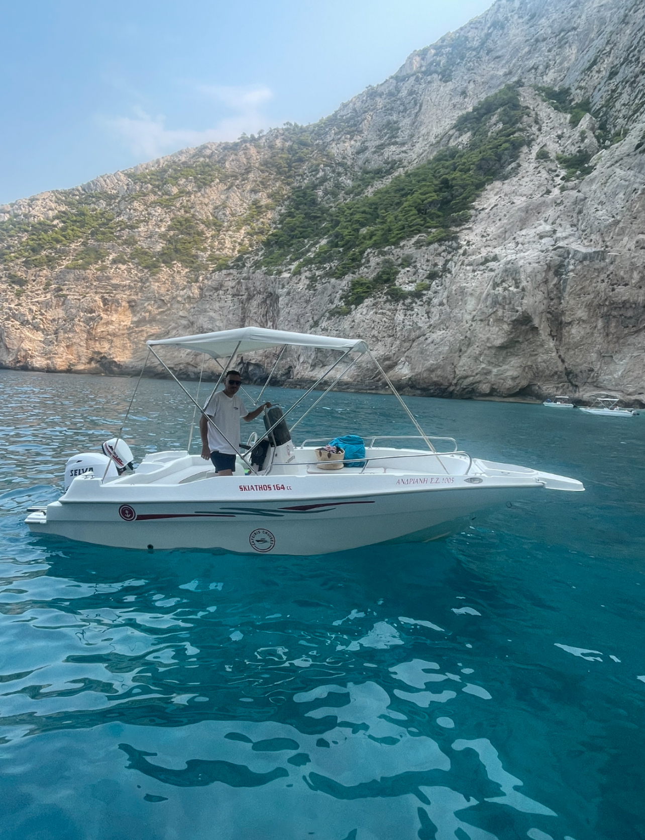 Andriani is the ideal self-drive boat for families and small groups. With space for up to 7 passengers, you can explore Zakynthos at your own pace and enjoy a simple, relaxing day at sea. Perfect for beach stops, swimming, and discovering hidden spots with total freedom.